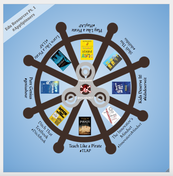 The problem is keeping up with the speed at which these new books are written and released. Teach Like a Pirate Edu Resources Part 1 and Part 2 app spinners include books I have read, but there are so many more in the pirate bookcase. Most of these books also have a Twitter hashtag (#) and chat. I included them on the app spinner for each book where applicable.